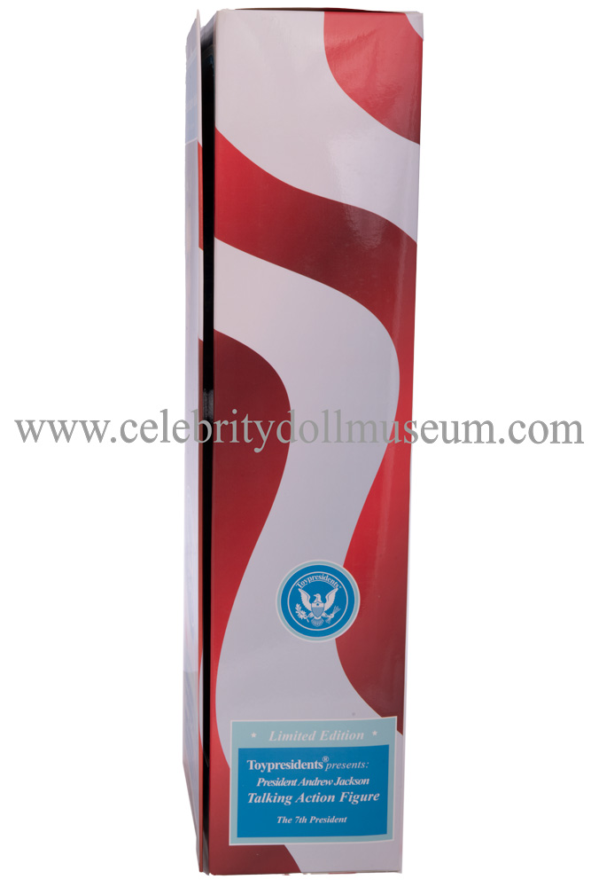 The Andrew Jackson celebrity doll portrays him as himself, the seventh president of the United States from 1829 to 1837. The talking doll was made by ToyPresidents, Inc. in 2005.