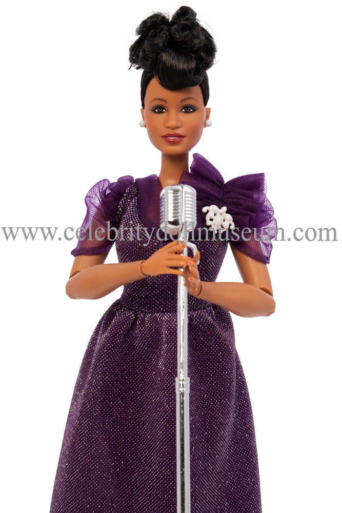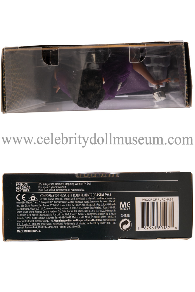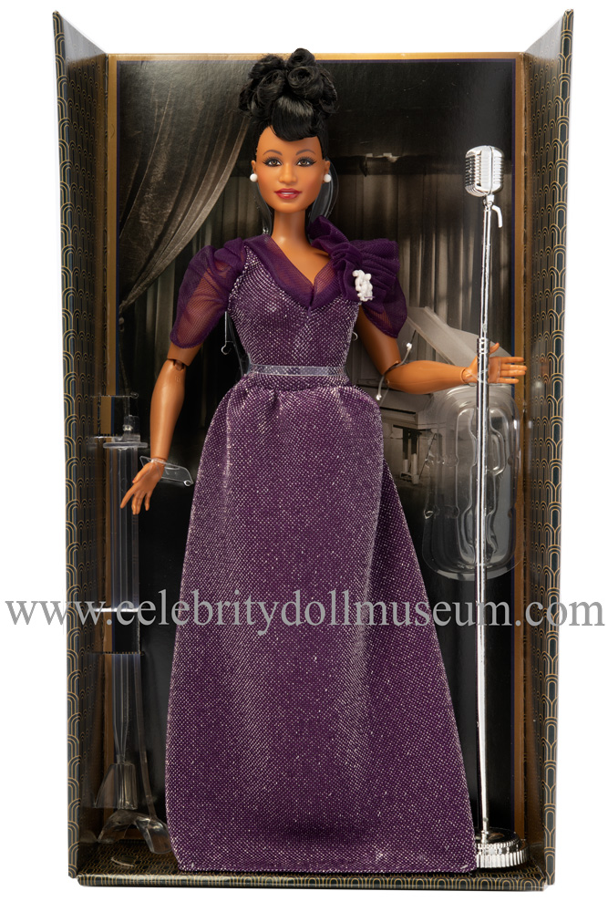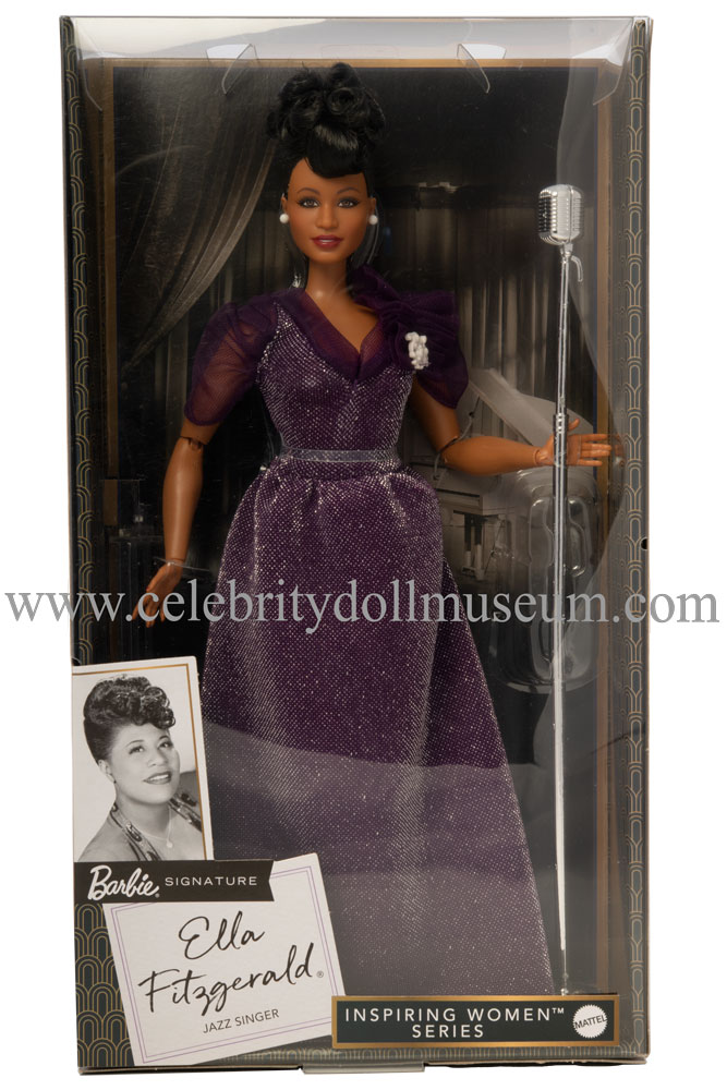 The Ella Fitzgerald celebrity doll depicts her as herself an American jazz singer in her late 20’s or early 30’s. Fitzgerald, the ‘Queen of Jazz’ has won fourteen Grammy Awards including her lifetime achievement award, the National Medal of Arts, and the Presidential Medal of Freedom from President George W. Bush. Ella Fitzgerald died in 1996 at the age of 79. The doll was made by Mattel and released on 2/19/2020 as part of the Inspiring Women™ Black Label Signature collection and retailed for $29.99. The doll was design by Carlyle Nuera.