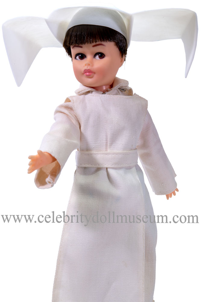 The Sally Field doll portrays her as a infantilized version of Sister Bertrille from the 1960’s television show The Flying Nun. The doll was made by Hasbro in 1967.