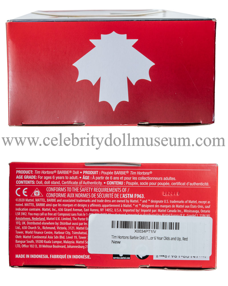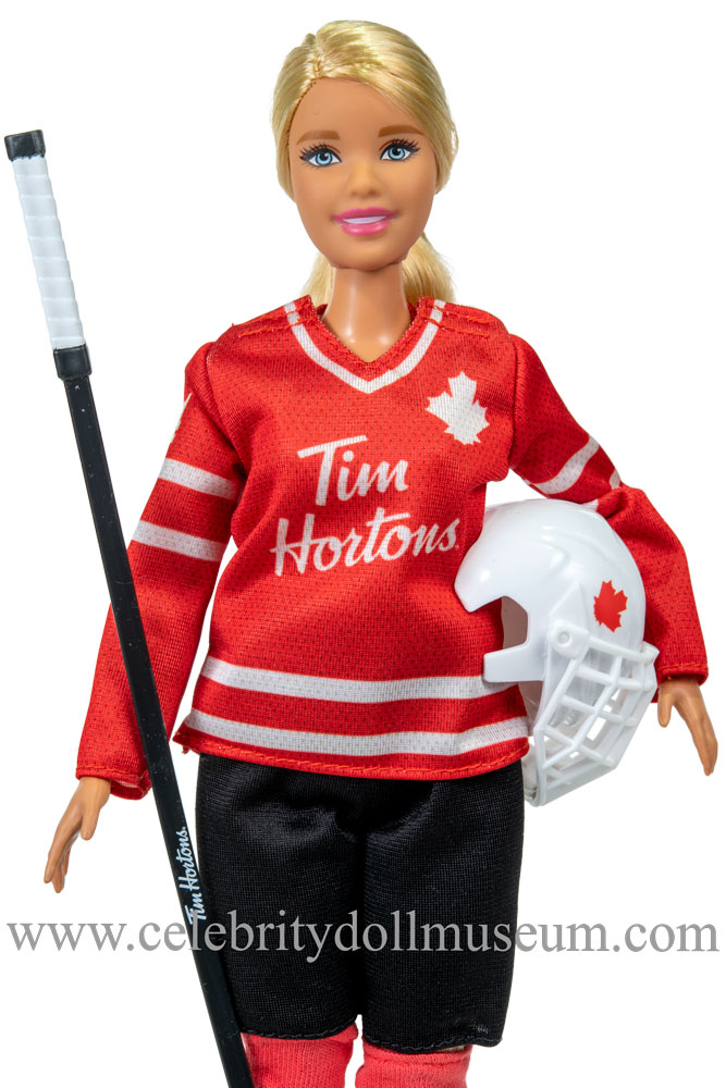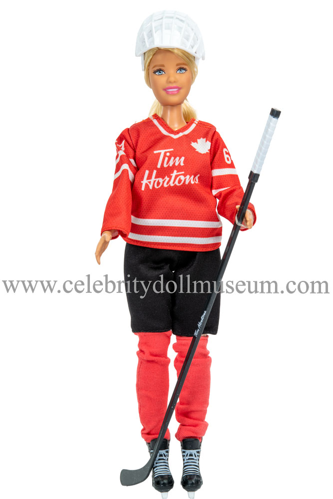The Marie-Philip Poulin celebrity doll depicts her at 29 as herself, a Canadian professional ice hockey player. The doll was release by Mattel in November, 2020 to celebrate Canadian hockey and was part of a promotion with the Canadian franchise/restaurant chain Tim Hortons (Hortons also sponsors Upper Dick Team Canada professional hockey trading cards). The doll retailed for C$29.99 and was only available in Canada. The Celebrity Doll Museum also has the Sarah Nurse Barbie doll in the collection.