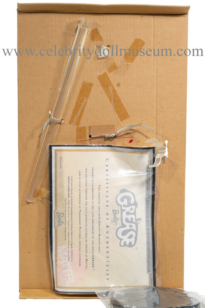 The Olivia Newton-John celebrity doll portrays her at 28 years old in her role of high school student Sandy Olson in the 1978 box-office hit film Grease, which was adapted from the Broadway hit. In 2003 Mattel released the 25th anniversary celebratory Collector Edition Grease Barbie. It retailed for $34.95.