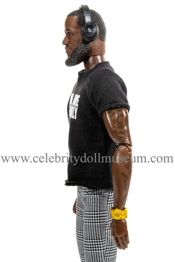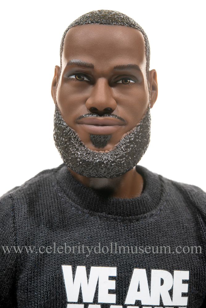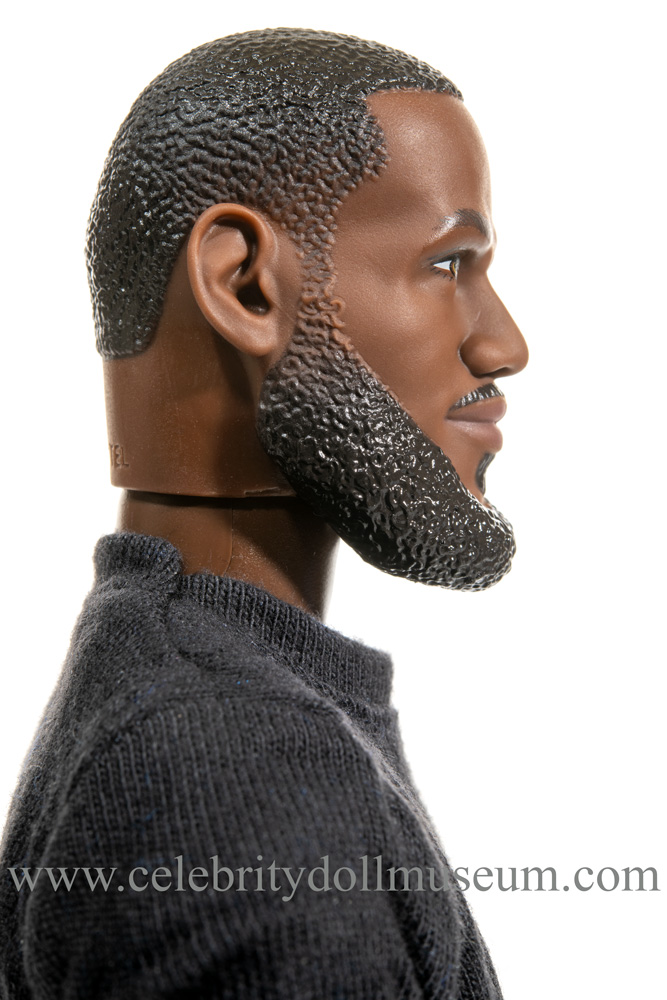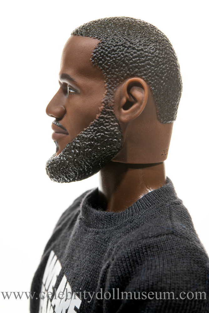 The hair and beard are molded to the Lebron James sculpt. The eyes are painted brown with an inner ring of gold and the black hair is close cut, with a thin mustache and a rounded medium beard. The arms are painted with transparent black tattoos along both arms.