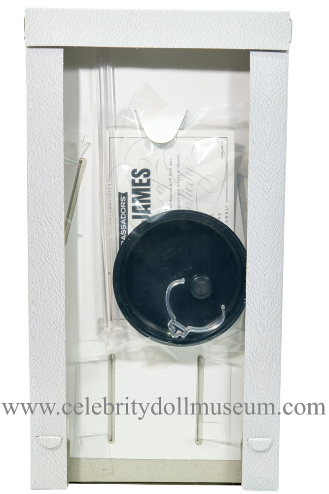 The doll comes with a Certificate of Authenticity and a black plastic waist grabbing clear pole Ken doll stand.