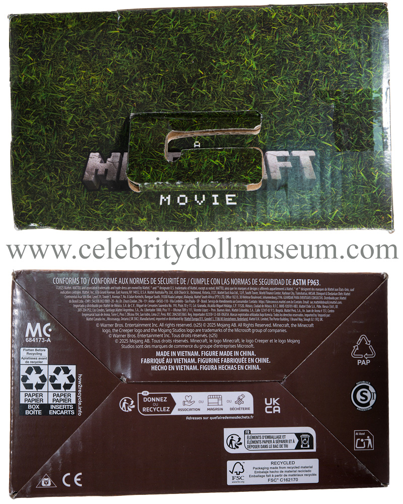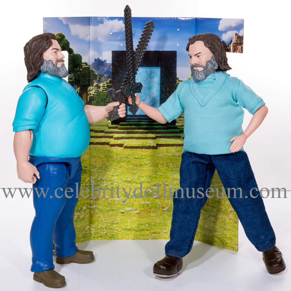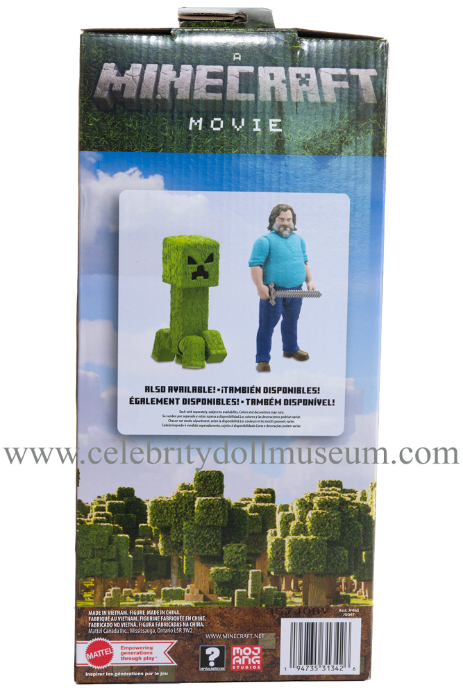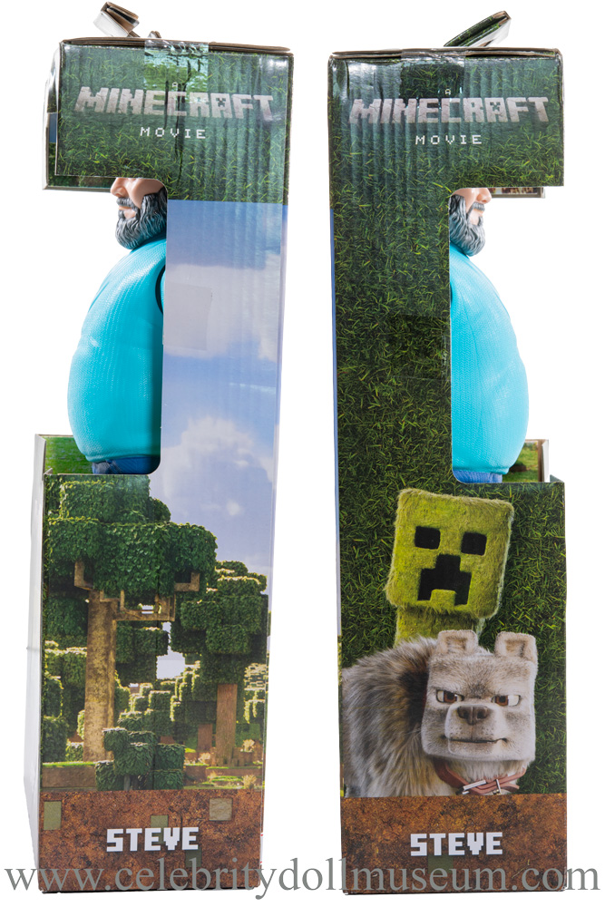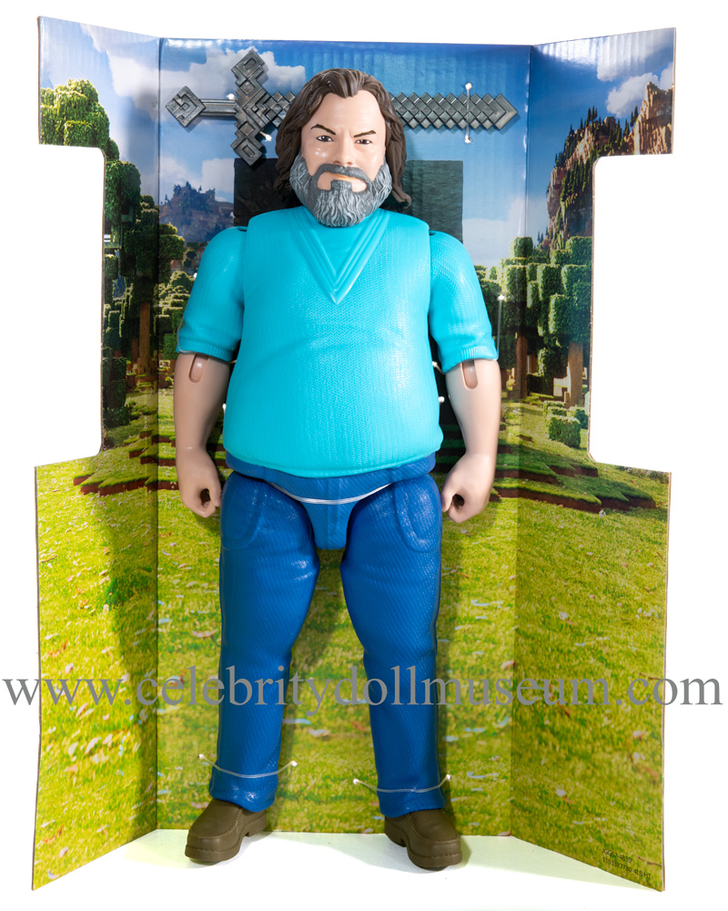 The Jack Black celebrity portrays him at 55 years old as Steve from the 2025 Legendary Pictures and Vertigo Entertainment film A Minecraft Movie based on the Minecraft video game. It was made by Mattel and released with the movie in April 2025 at a retail price of $14.99. Later summer releases were at $17.99 because of the tariff tax. Steve was the only movie actor made in the full 12 inch size.