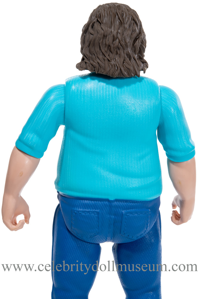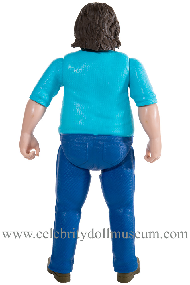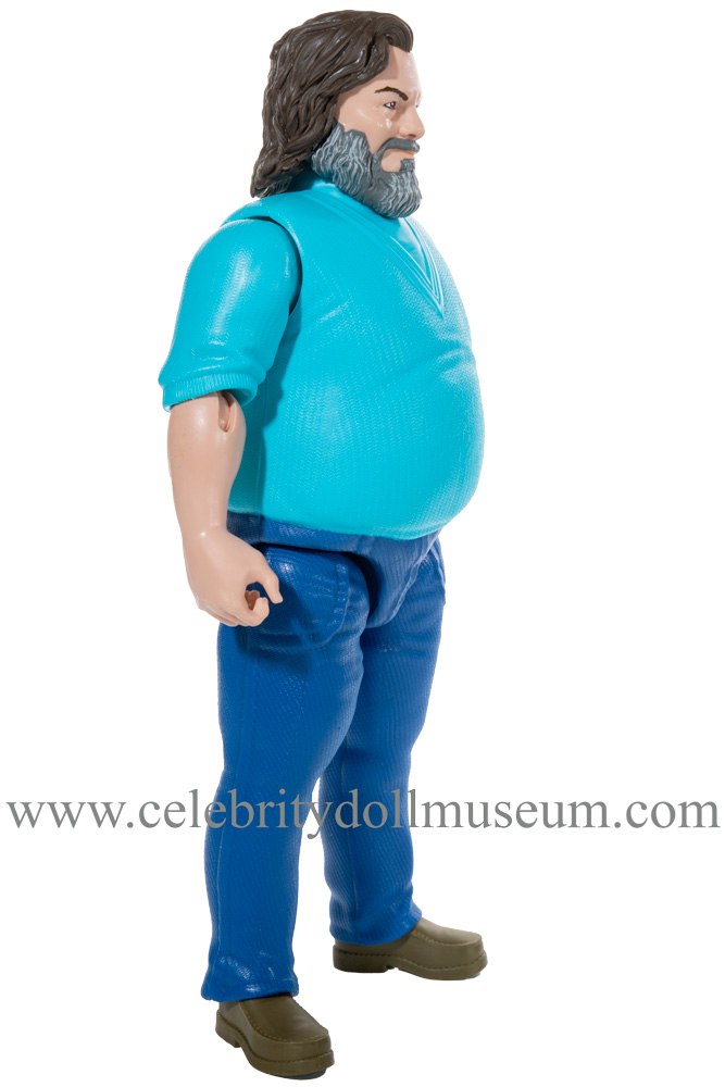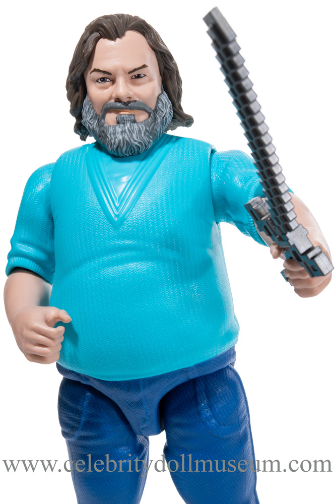 The Jack Black figure has molded black and gray hair and beard with a turquoise painted shirt, blue pants, and army green shoes. The head turns and nods and the articulation is at the shoulders, elbows and hips. The doll is able to do the side splits.