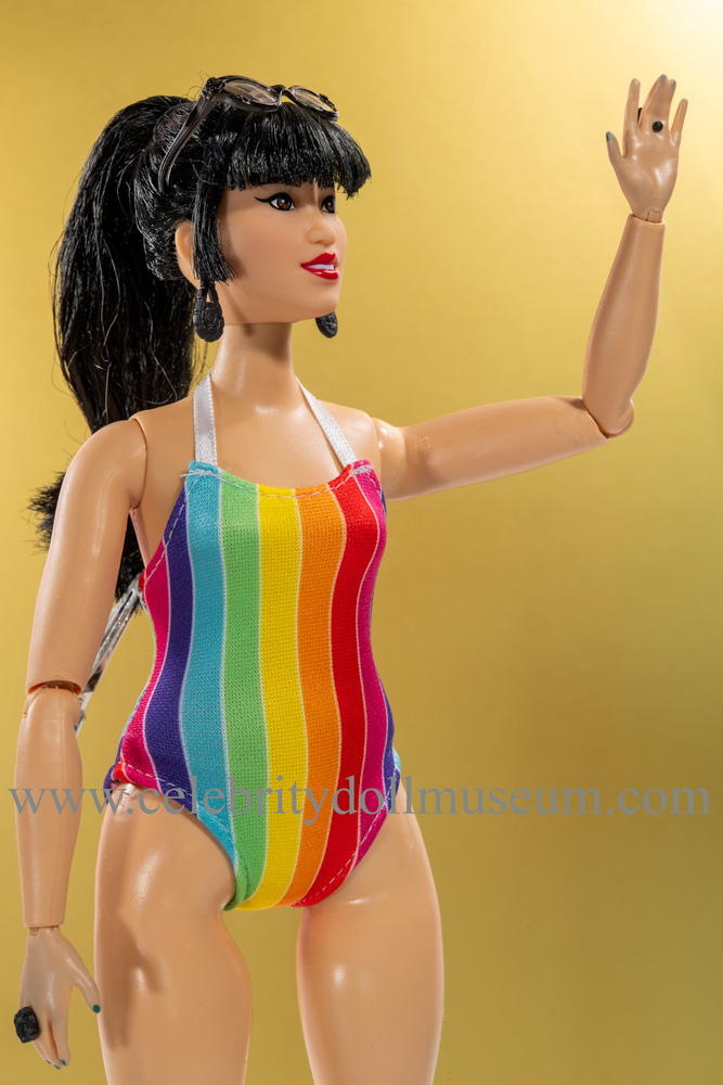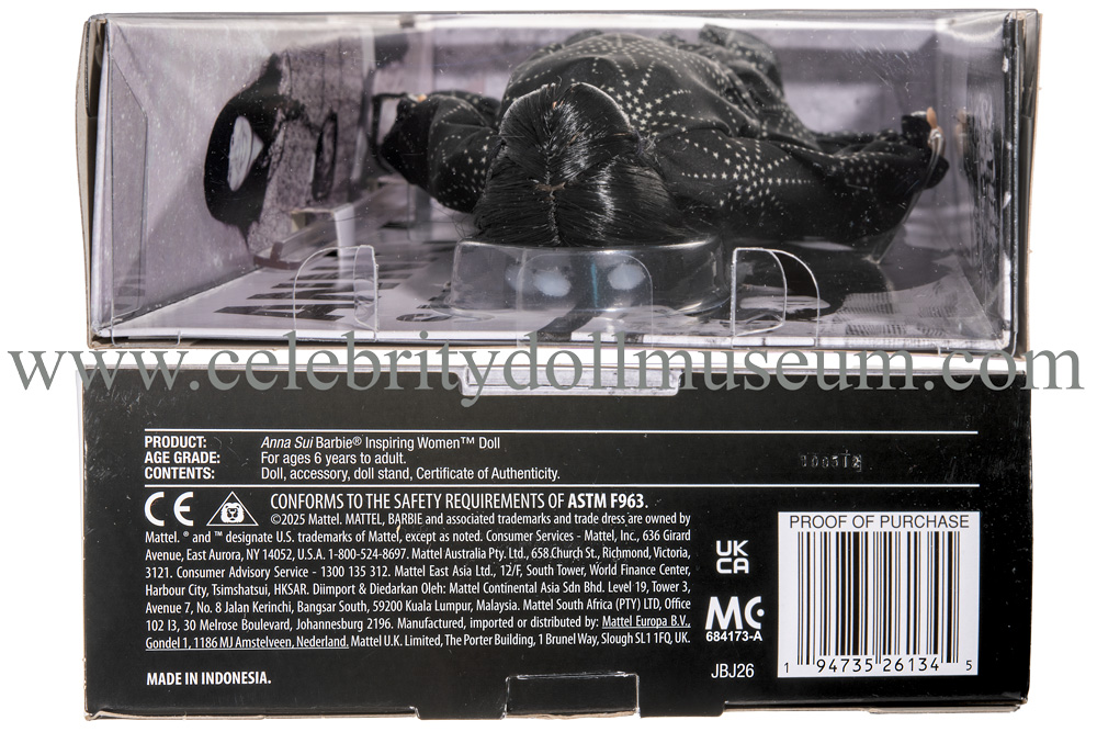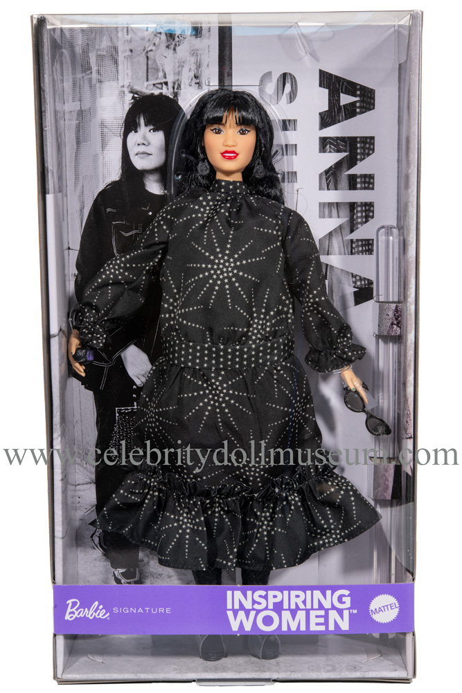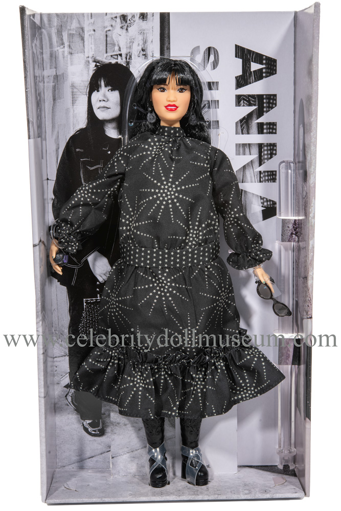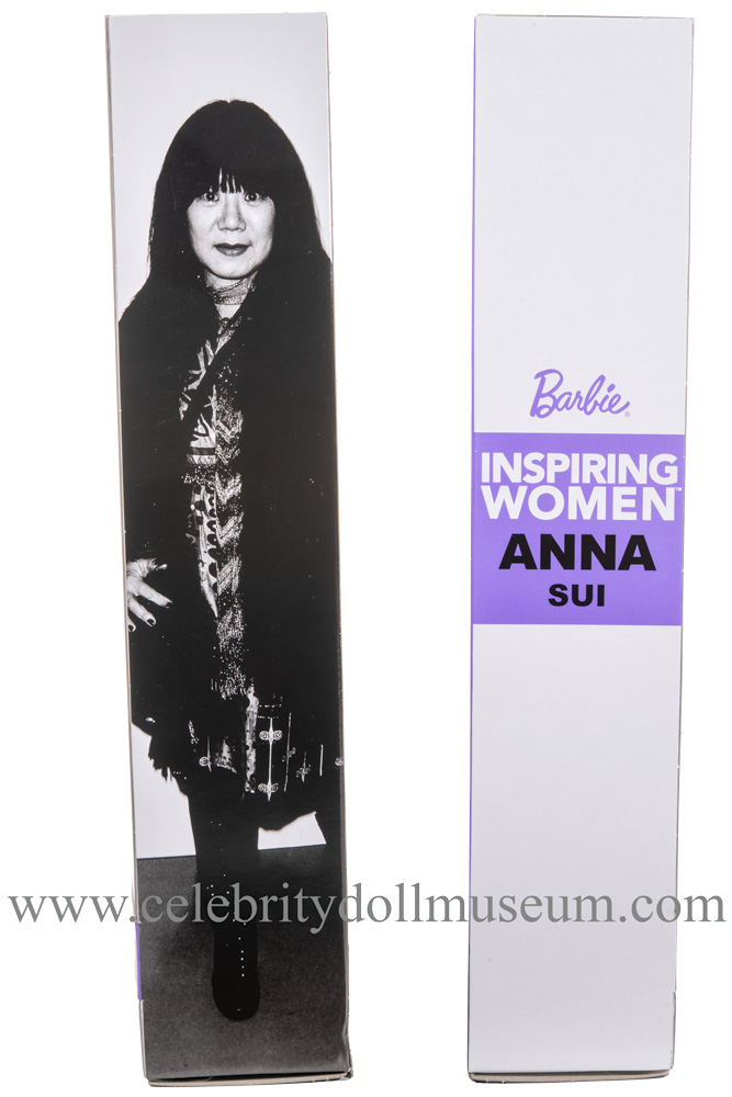 The Anna Sui celebrity doll depicts her wearing a tribute outfit to her fashion style designs. Sui is a Chinese American Chinese legendary fashion designer who got her start by designing clothing for her Barbie doll as a child. She became famous for her 1990’s grunge aesthetic and her inspiring career evolved from there.