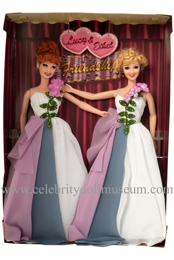 The Lucy and Ethel set includes two white base plastic doll stands and Mattel Certificate of Authenticity.